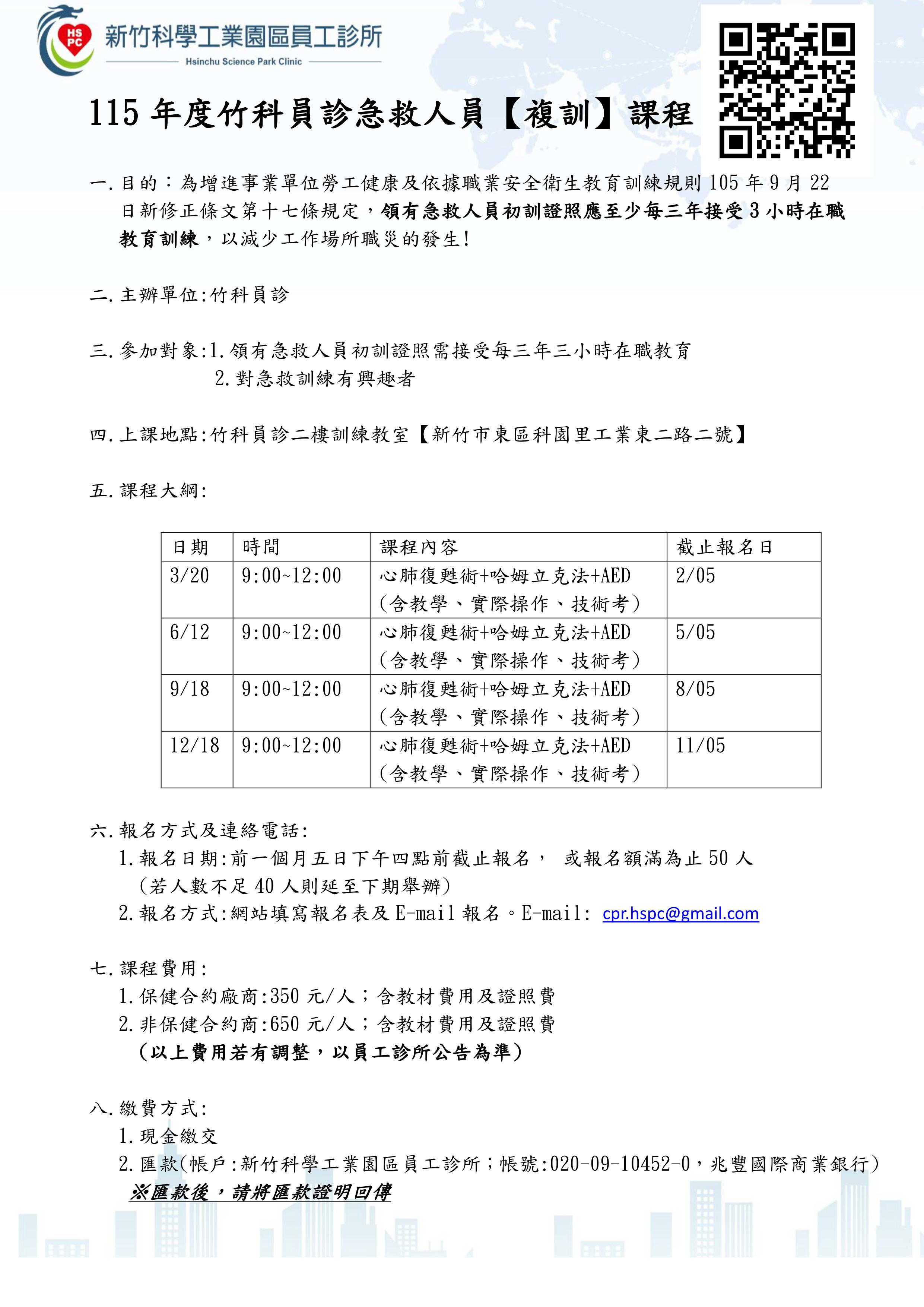 新竹科學園區員工診所 Hsinchu Science Park Clinic (HSPC)