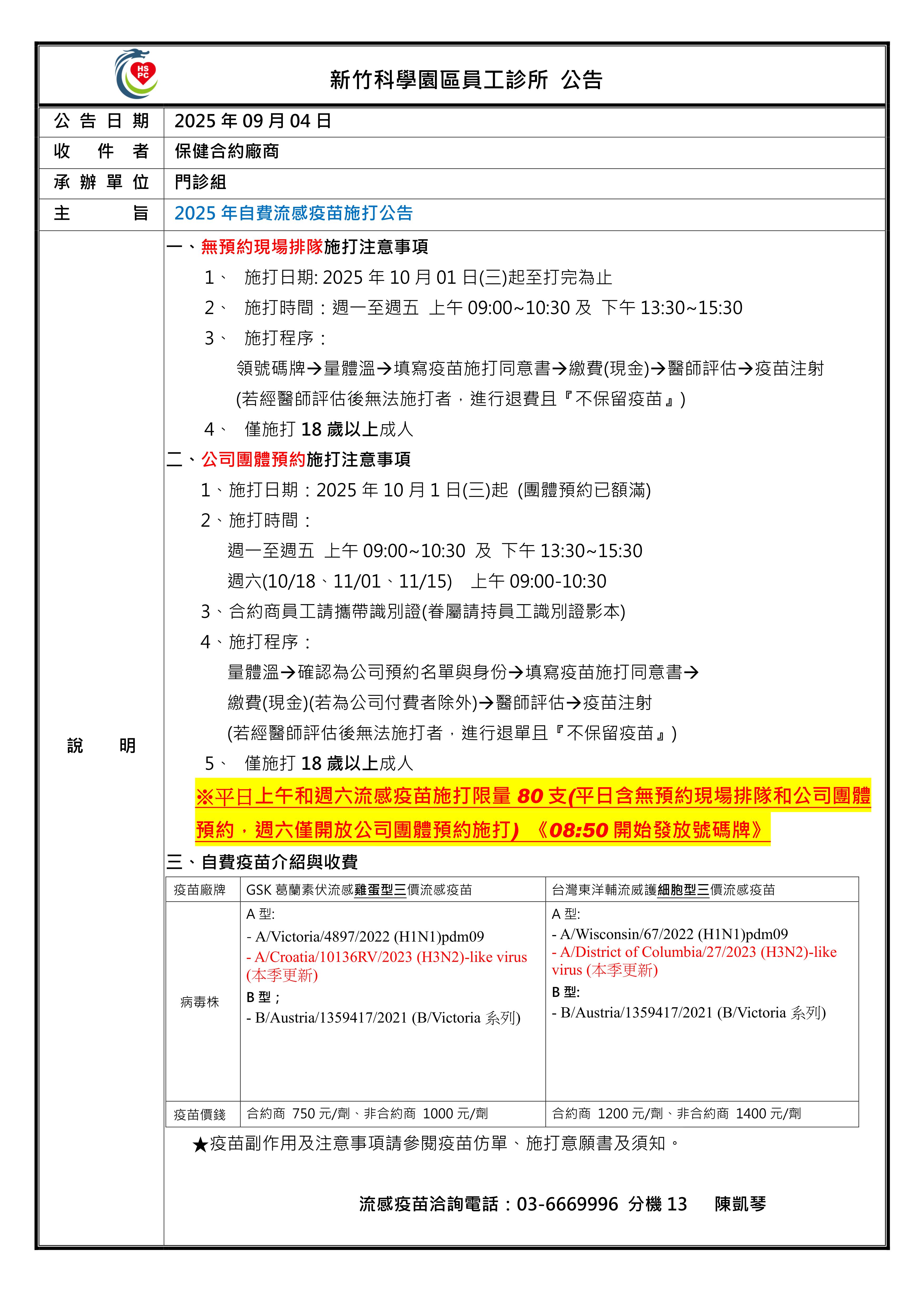 新竹科學園區員工診所 Hsinchu Science Park Clinic (HSPC)